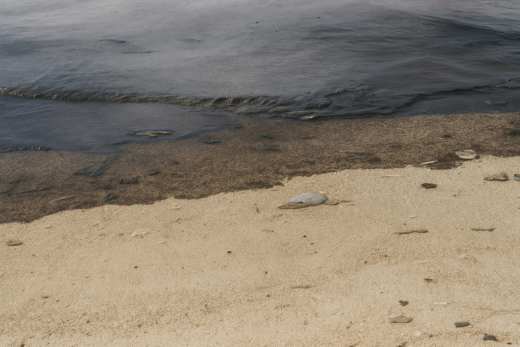 - “Thick oil slicks” suggesting a liquid, oily substance on the surface